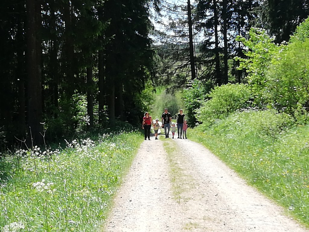 Man kann von hier aus übrigens auch bis zum Blockhaus am Schwarzen Mann wandern. Dies beinhaltet aber einige hundert Höhenmeter, was uns an diesem Tag aufgrund des jüngsten Wanderkindes (3 Jahre) als zu lang erschien. So liefen wir gemütlich in drei Kilometern und gerade mal 50 Höhenmetern bergauf und wieder bergab eine schöne Runde durch den angrenzenden Wald und einmal komplett um den See herum.