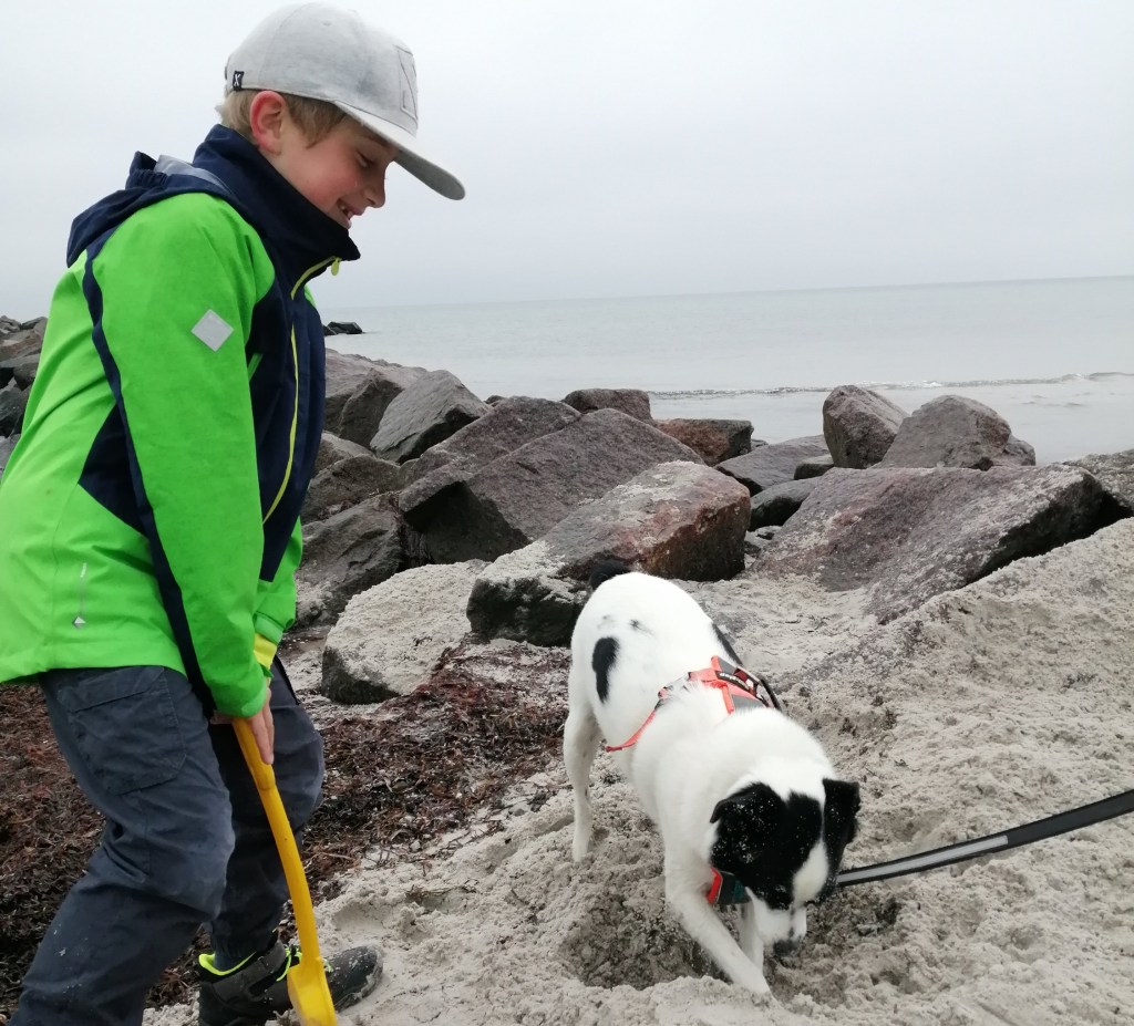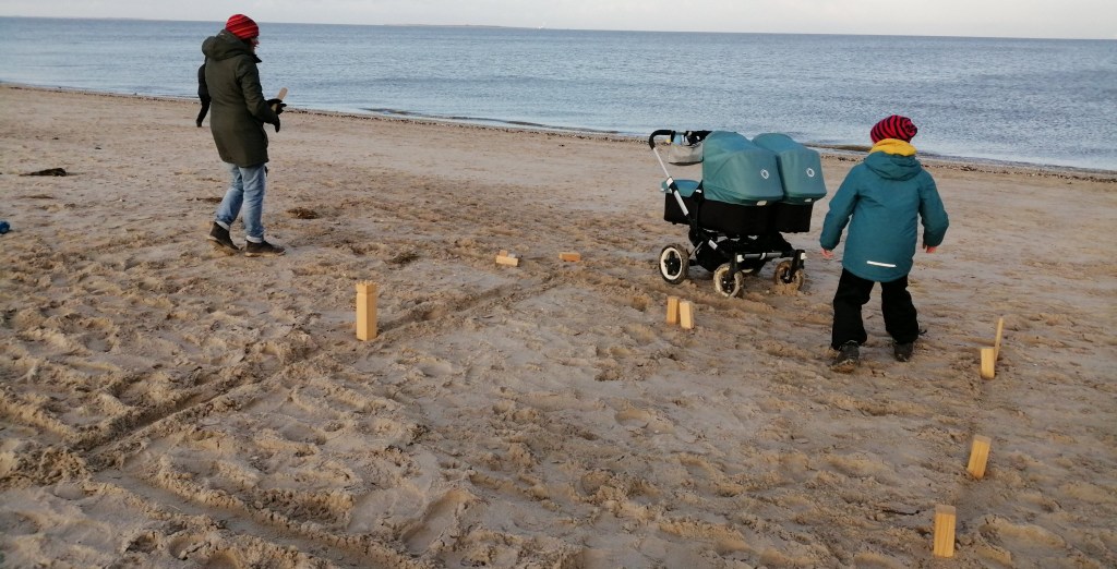 Dementsprechend viel Zeit haben wir am Strand verbracht. Mit Sandburgen bauen, buddeln (sehr zur Freude von unserer Hundedame Panda, aber auch unser Outdoorjunge ist immer noch mit viel Eifer dabei) und Wikingerschach. Wer letzteres nicht kennt, sollte es unbedingt einmal ausprobieren. Nicht nur mit Kindern, auch Erwachsene haben eigentlich immer Spaß dabei. Natürlich haben wir auch ausgiebige Spaziergänge am Strand unternommen, dabei Muscheln und Steine gesammelt oder eine Runde gekickt.