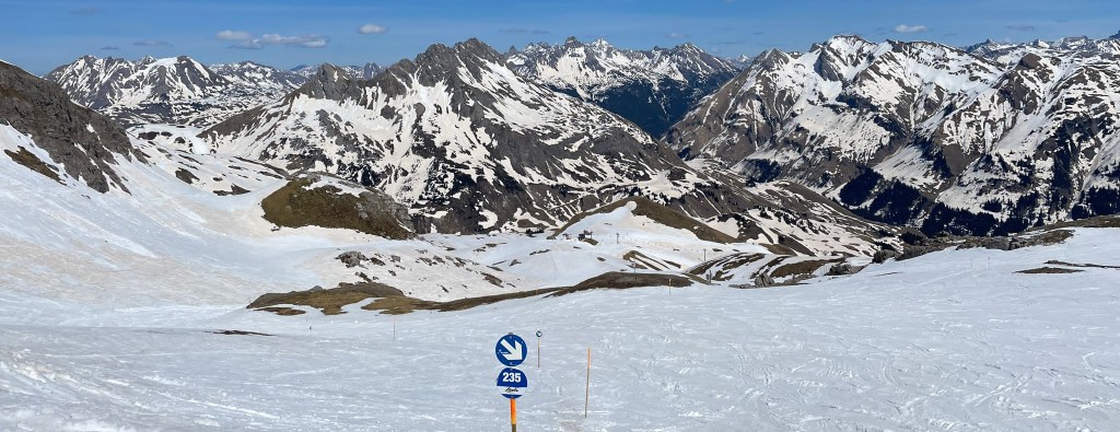 Zwischendurch haben wir natürlich auch Pausen gemacht und das traumhafte Wetter genossen. Das gehört im Skiurlaub zu Ostern einfach dazu. Es war für mich tatsächlich das allererste Mal mit den Abstechern nach Lech, Zürs und St. Anton (inzwischen bilden die Orte mit Warth-Schröcken ja ein riesiges Skigebiet), und ich habe es nicht bereut. Im Gegenteil: Die Abfahrten dort sind nicht nur lang, sondern auch landschaftlich ein Traum – Genuss-Skifahren pur. So soll es sein!