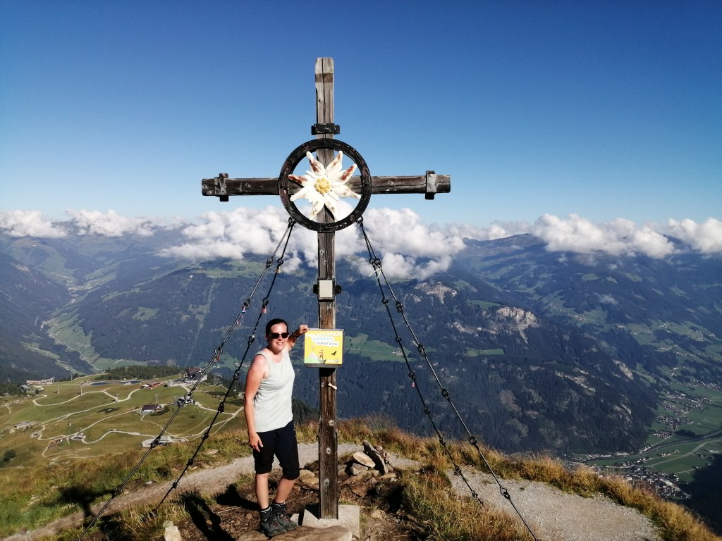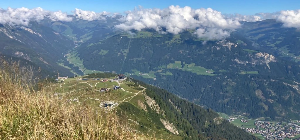 Am Tag unseres Abstiegs war dann plötzlich bestes Bergwetter. Aber nun war die Ahornspitze zeitlich leider nicht mehr drin, denn wir mussten ja den gebuchten Zug zurück in die Heimat bekommen. Stattdessen stiegen wir auf dem Weg zurück zur Ahornbahn noch auf den Filzenkogel. So hatten wir immerhin einen kleinen Gipfelerfolg zu verzeichnen und konnten das tolle Panorama ausgiebig von dort genießen. Und die Ahornspitze? Die läuft uns ja nicht weg, wahrscheinlich nehmen wir zu unseren 45. Geburtstagen einen neuen Anlauf.