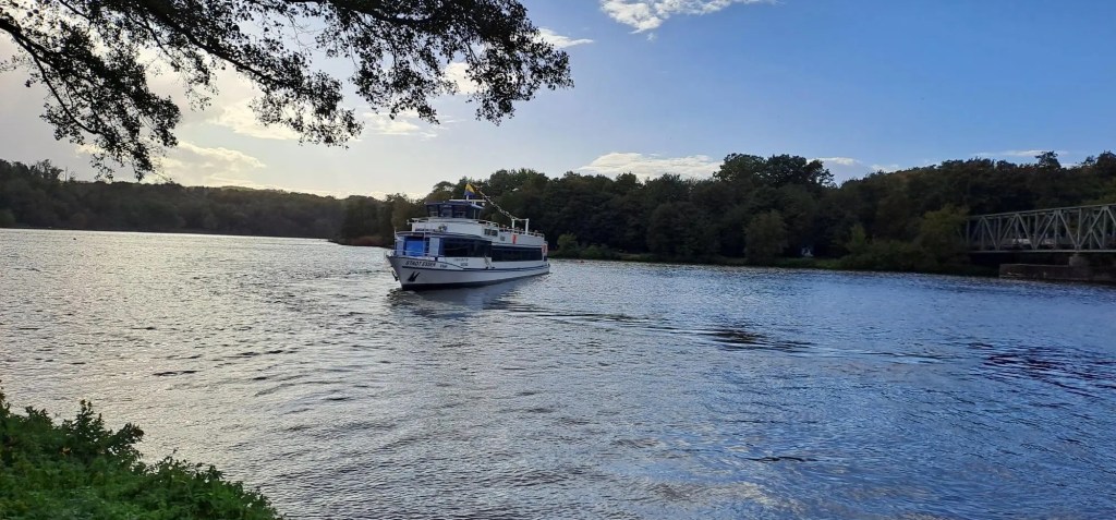 Bevor wir schließlich unser Tagesziel, Essen-Kupferdreh erreichten, ging es munter weiter Richtung Nord-Westen, wobei wir ein kurzes Stück auch durch Hattinger Stadtgebiet wanderten. Danach war es nicht mehr weit bis zum Baldeneysee und der Mündung des Deilbachs. Am Ufer des Sees ließen wir uns eine Currywurst und ein kühles Getränk schmecken, bevor unsere erste Etappe am S-Bahnhof Essen-Kupferdreh endete. Von dort aus fuhren wir mit der S-Bahn in die Essener Innenstadt zur unserer Übernachtung im Moxy Hotel, das wir durchaus für Familien und Hundebesitzer empfehlen können.