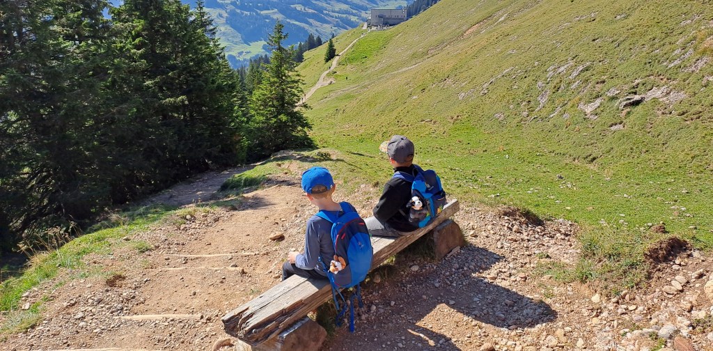 Bereits bei unserer ersten Familien-Hüttentour waren wir vom Staufner Haus begeistert. Damals lag allerdings viel Schnee dort oben, sodass wir nicht auf den Gipfel des Hochgrat steigen konnten. Das haben wir jetzt nachgeholt. Dazu sind wir mit der Gondel bis zur Bergstation gefahren und dann über den steilen Steig bis zum Gipfelkreuz gewandert. Vom höchsten Punkt im westlichen Allgäu hat man einen fantastischen Rundumblick und wir konnten viele, uns bekannte andere Gipfel erkennen.