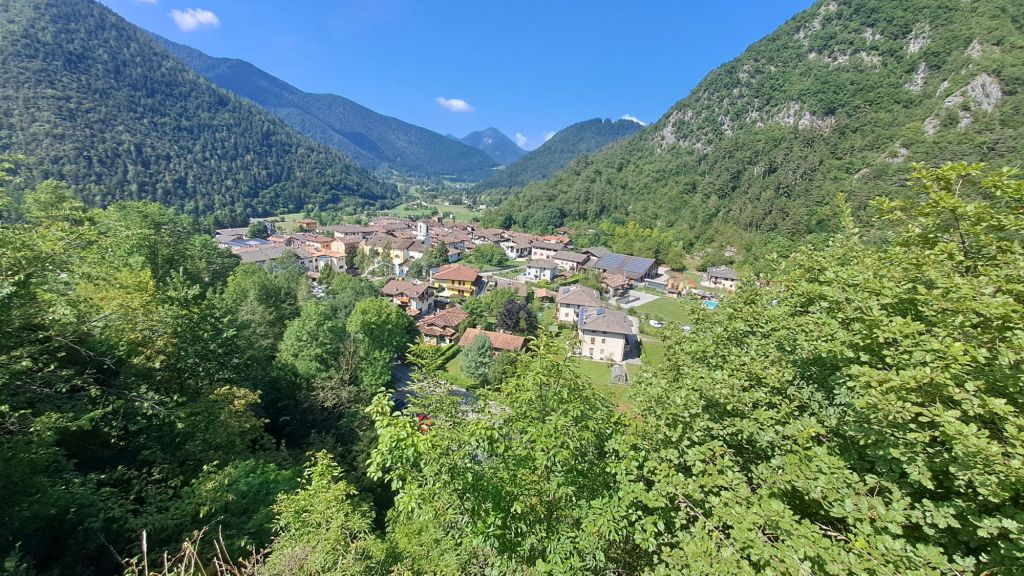 Eine weitere Wanderung haben wir von Pieve die Ledro aus mit dem Rücken zum See bis nach Locca und Bezzecca unternommen. Auch hier gab es gut ausgeschilderte Wege, die problemlos zu finden und zu erwandern waren. Allerdings kamen hier ein paar Höhenmeter hinzu, was in der August-Hitze ganz schön anstrengend und schweißtreibend war. Auf dem Colle die Santo Stefano trafen wir dann zur Belohnung aber nicht nur auf einen schönen Aussichtspunkt, sondern auch auf ein altes Höhlensystem, welches natürlich den Entdeckergeist unseres Outdoorjungen hervorrief und zudem eine willkommene Abkühlung bot.
