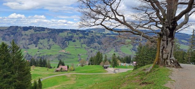 Am ersten Tag sind wir mit dem Bus nach Immenstadt gefahren und dort mit der Bergbahn hinauf auf den Mittag. Von dort aus wanderten wir zunächst auf den Bärenkopf und stiegen danach über die Alpe Vorderkrumbach und die Winkelwiesenalpe bergab nach Gunzesried. Weiter ging es über den Tobelweg immer an der Gunzesrieder Ach entlang zurück bis zu unserer Unterkunft in Ettensberg.
